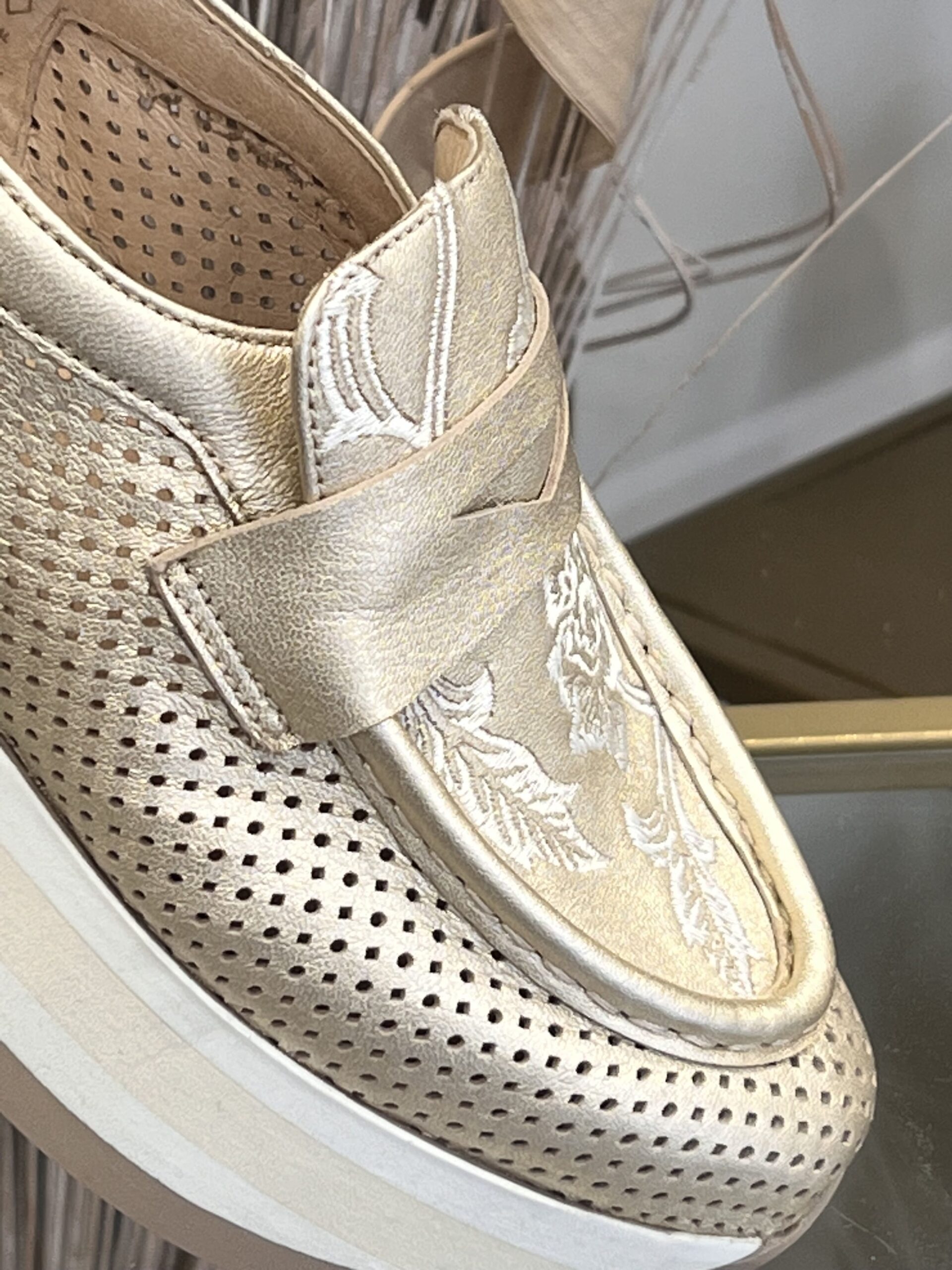 Laissez-vous séduire par les mocassins Christal de chez Softwaves, une véritable alliance entre élégance contemporaineet confort absolu. Ce modèle en cuir platine, subtilement brillant, illumine chaque pas, tandis que l’effet coco embosséajoute du caractère et une touche de luxe à votre look ✨
