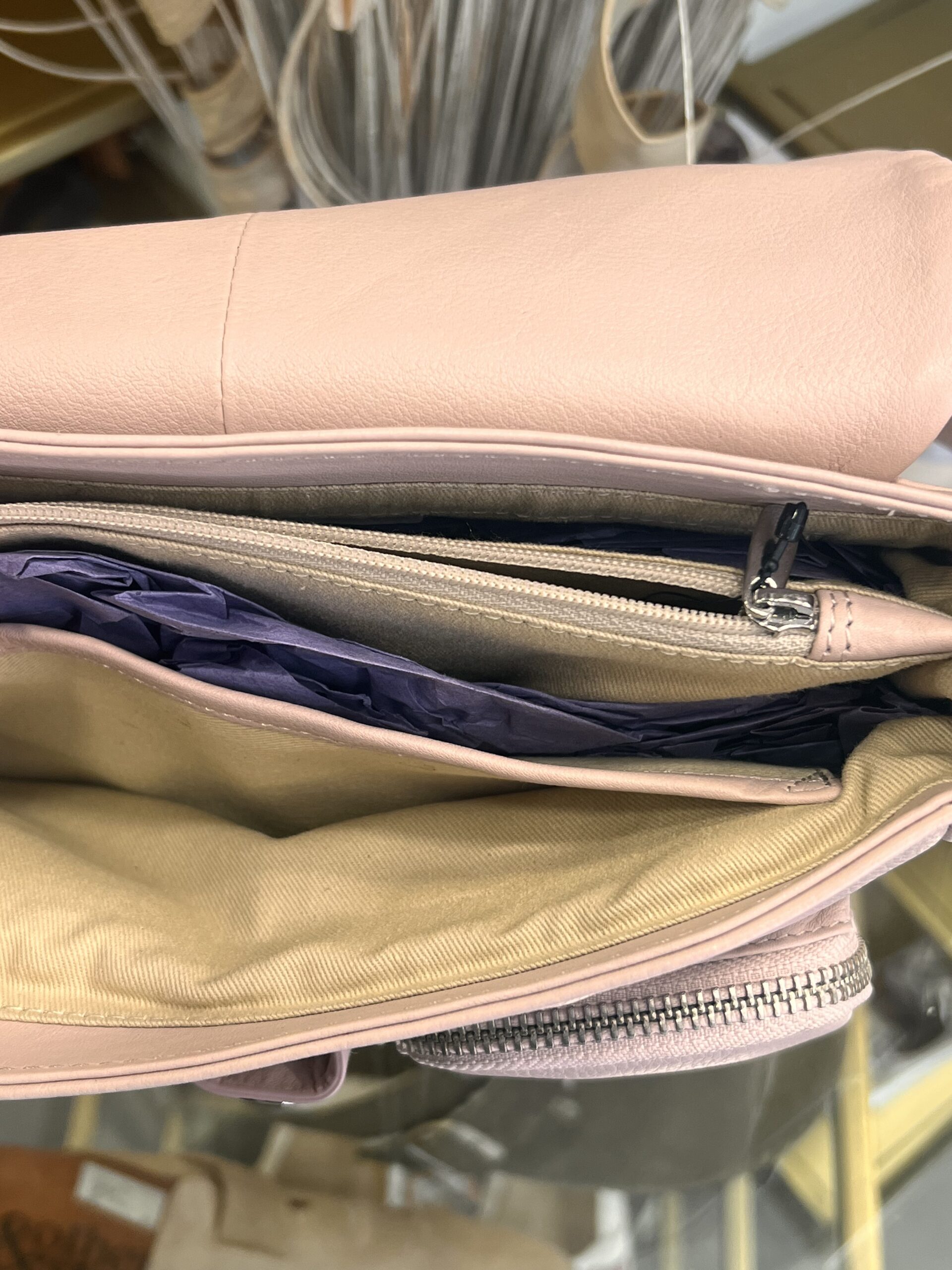 - Deux compartiments intérieurs, divisés par une grande poche centrale zippée.