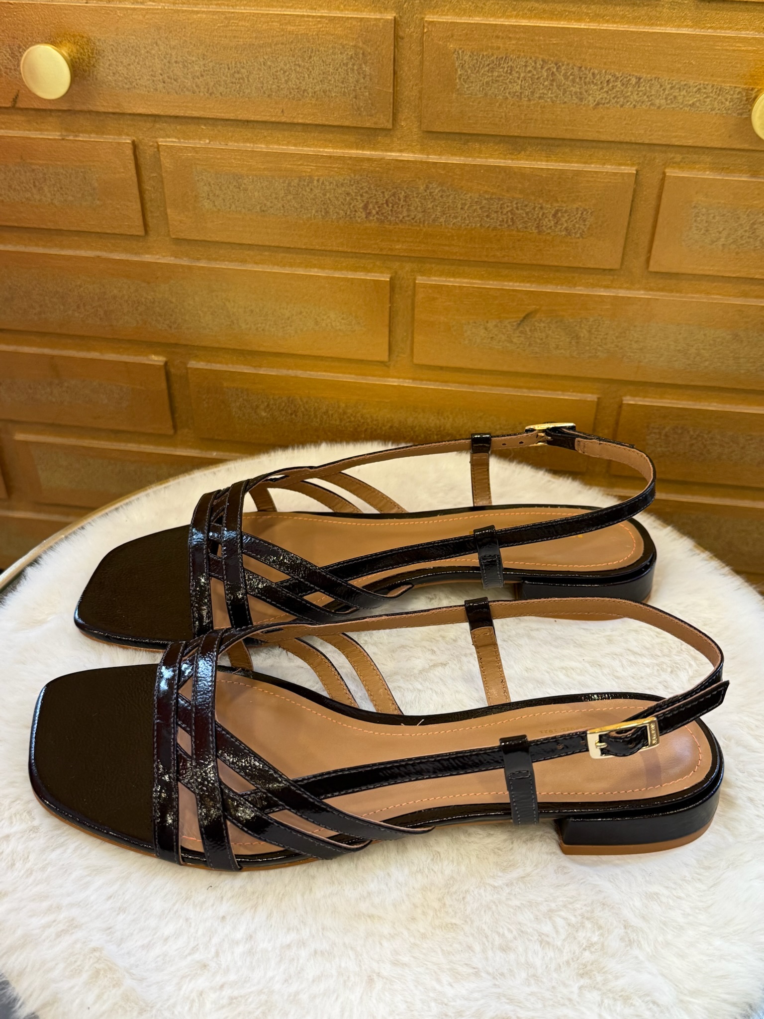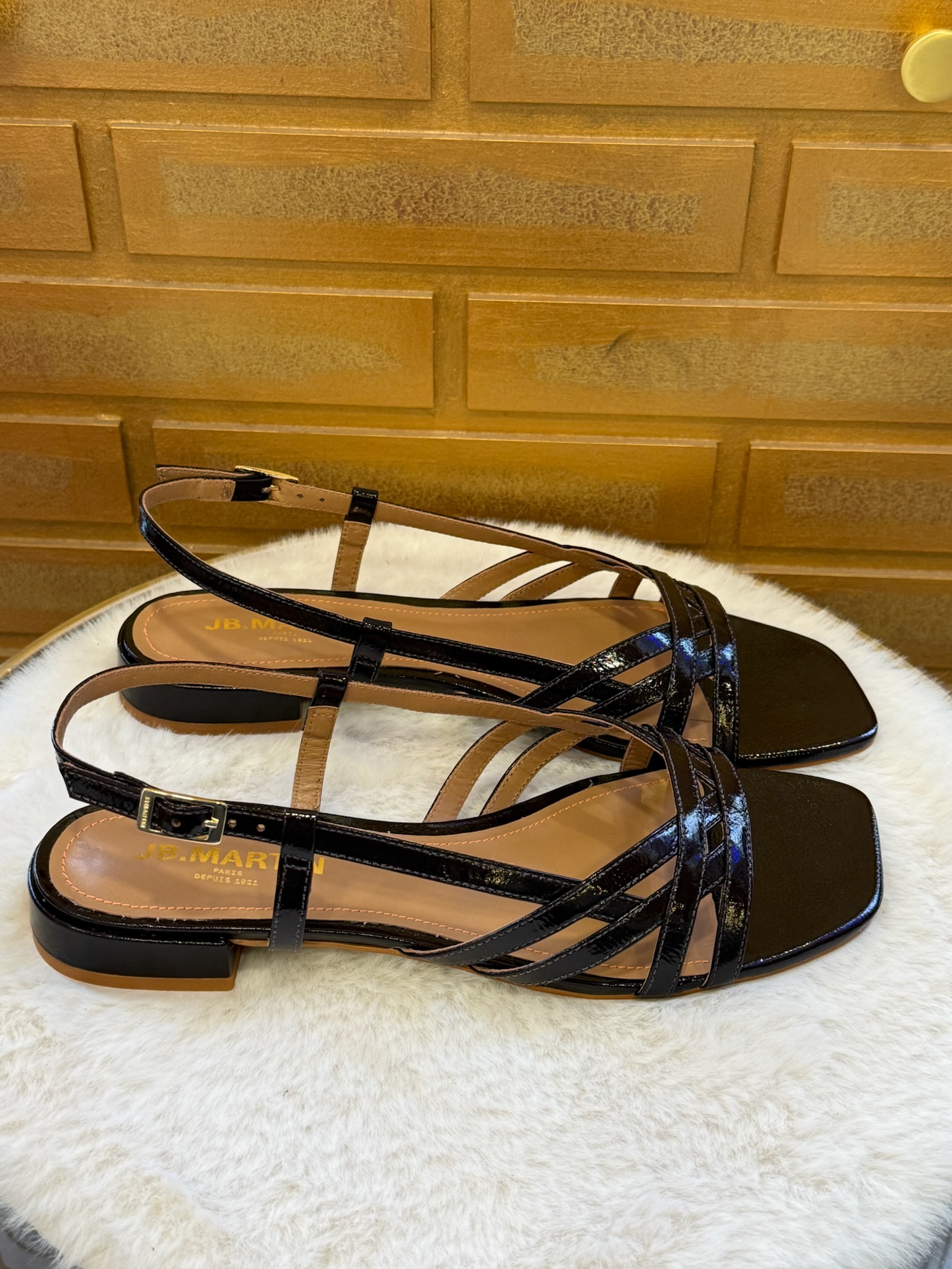 Pour entretenir le cuir vernis, utilisez un chiffon doux légèrement humide et évitez les produits abrasifs. Rangez vos sandales à l’abri de la chaleur pour préserver leur brillance.❓Questions fréquentes