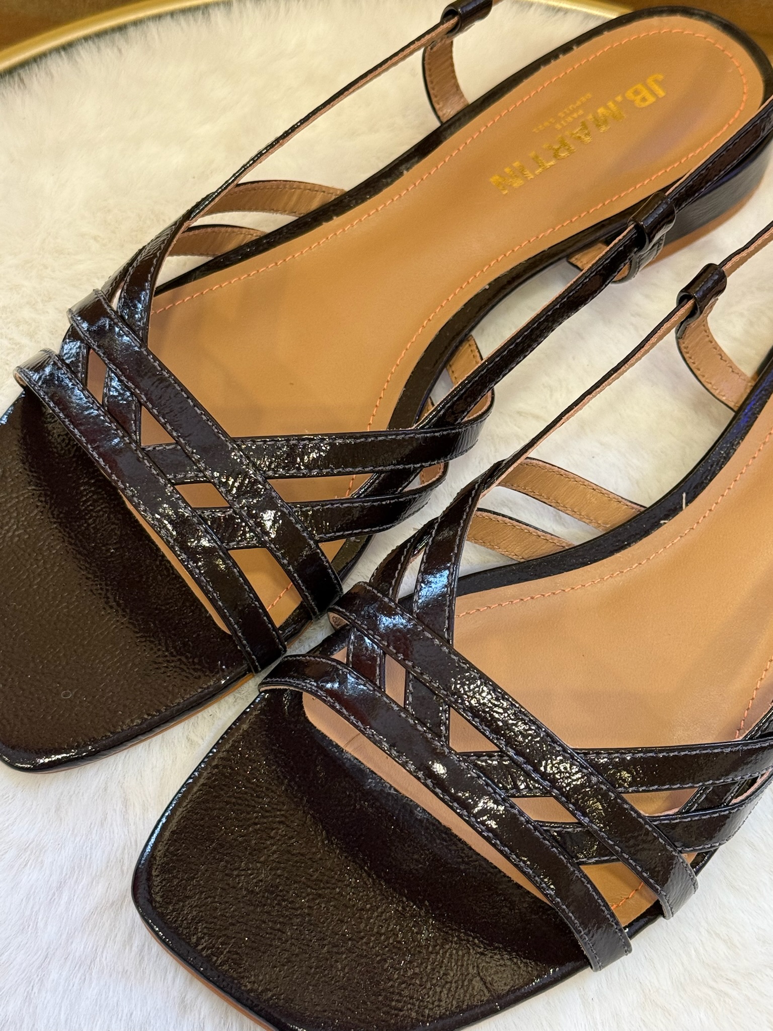 Sandales femme JB Martin Dahlia – cuir vernis chocolat, élégance et féminité